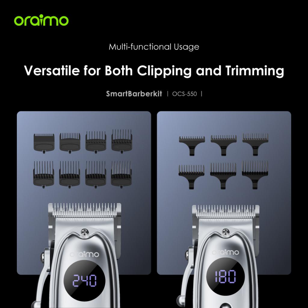 Oraimo Smart Barber Kit OCS-550 adalah seperangkat alat cukur elektrik professional yang cocok digunakan untuk barbershop atau usaha pangkas rambut atau untuk kalian yang sering menggunakan alat cukur. Clipper ini memiliki teknologi yang terbaru dan update untuk menghilangkan Jenggot, Rambut dan Bulu yang memiliki sistem performa yang tinggi dan aman untuk kulit dan rambut anda. Di dalam paket sudah terdapat 1 box alat barbershop yang berisi 2 clipper rambut beserta ukuran pisau yang berbeda-beda yang dikemas secara rapih dan professional.